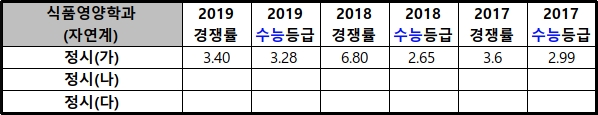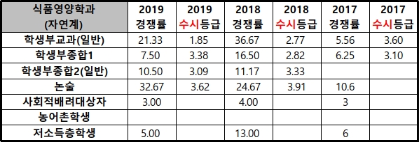 2019학년도 부산대학교 식품영양학과(인문사회계) 경쟁률/수시등급/정시등급 (0) | 2019.12.11 |