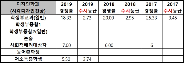 | 2019학년도 부산대학교 실내환경디자인학과(인문사회계) 경쟁률/수시등급/정시등급 (0) | 2019.12.11 |