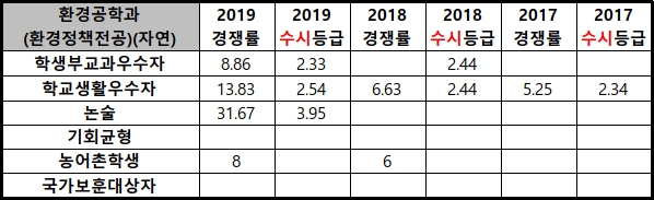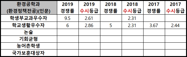 | 2019학년도 서울과기대 환경공학과(환경공학전공) 경쟁률/수시등급/정시등급 (0) | 2019.12.19 |