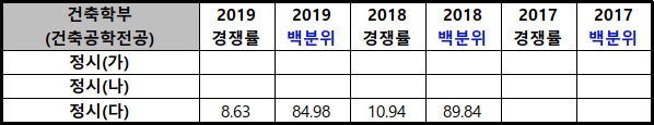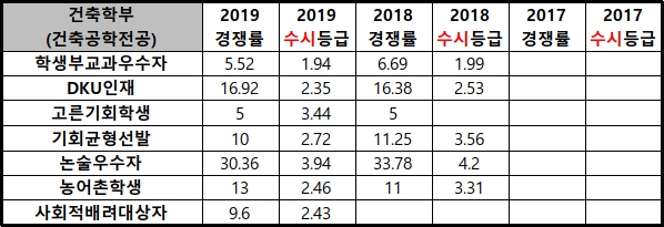 | 2019학년도 단국대 건축학부(건축학전공/5년제) 경쟁률/수시등급/정시등급 (0) | 2019.12.22 |