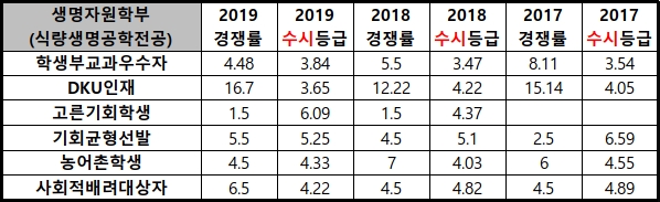 | 2019학년도 단국대(천안) 생명자원학부(동물자원학전공) 경쟁률/수시등급/정시등급 (0) | 2019.12.24 |