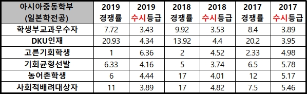 | 2019학년도 단국대(천안) 아시아중동학부(중국학전공) 경쟁률/수시등급/정시등급 (0) | 2019.12.24 |