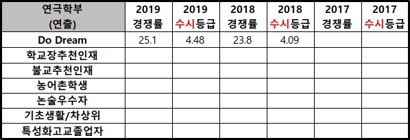 | 2019학년도 동국대 영화영상학과 경쟁률/수시등급/정시등급 (0) | 2019.12.27 |