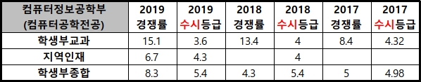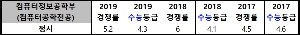 | 2019학년도 대구대 컴퓨터정보공학부(컴퓨터소프트웨어전공) 경쟁률/수시등급/정시등급 (0) | 2020.01.01 |