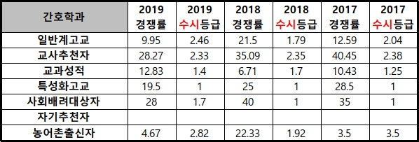 2019학년도 정시평균등급 3.3