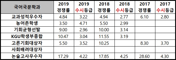 | 2019학년도 경기대 경영학과 경쟁률/수시등급/정시등급 (0) | 2020.01.04 |