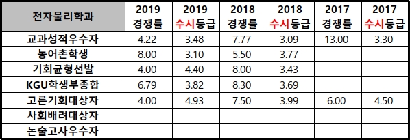 | 2019학년도 경기대 전자공학과 경쟁률/수시등급/정시등급 (0) | 2020.01.05 |