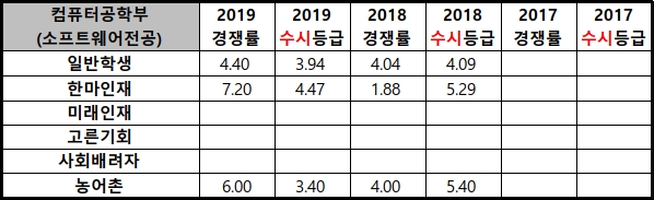 | 2019학년도 경남대 컴퓨터공학부(정보보안전공) 경쟁률/수시등급/정시등급 (0) | 2020.01.09 |
