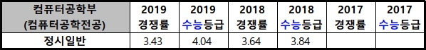 | 2019학년도 경남대 컴퓨터공학부(소프트웨어전공) 경쟁률/수시등급/정시등급 (0) | 2020.01.09 |