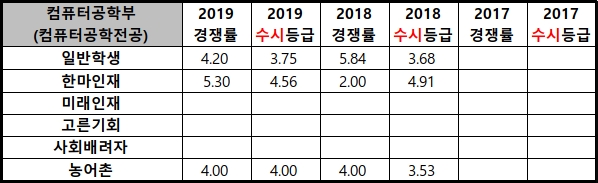 | 2019학년도 경남대 컴퓨터공학부(정보보안전공) 경쟁률/수시등급/정시등급 (0) | 2020.01.09 |