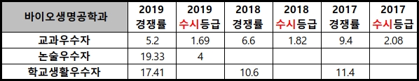 | 2019학년도 성신여대 바이오식품공학과 경쟁률/수시등급/정시등급 (0) | 2020.01.10 |