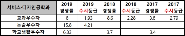 | 2019학년도 성신여대 소비자생활문화산업학과 경쟁률/수시등급/정시등급 (0) | 2020.02.06 |